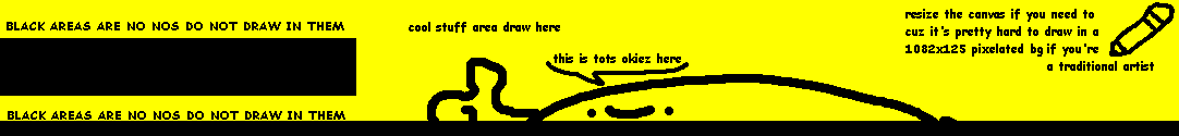 TemplateIt's recommended to draw in this premade template so you know what areas you should and shouldn't draw in when making it. The template will be updated at anytime just incase if there's errors or anything werid with itPrize?Well, what do you think?If we're talking about participation prizes, I guess some of the art from here can go to the Gallery. Rules, Obviously1. Obviously no NSFW/sexual stuff, things that make people uncomfortable, or things that go way past the sites age rating.2. If your resizing the canvas, make sure it's similar to the original canvas size (1082x125) when it needs to be rescaled back to it. 3. Make sure the banner you're making fits with the theme of the website and people feel about it. For example, This website's theme is retro, red, and nostalgic so you might wanna draw a cool doom themed background and add characters like Doomguy onto the background. Where and How to Submit it?Just like 2023's WAD Contest, you'll submit your stuff via Google Forms.Don't worry though, there's no email required doing it! Just your name and neocities site for credit though incase if it goes to the gallery or on the website's credits page that's listed in the footer. Submissions end on October 18th! If no submissions are submitted by then I'll increase the deadline or just make the banner background by myself :( |